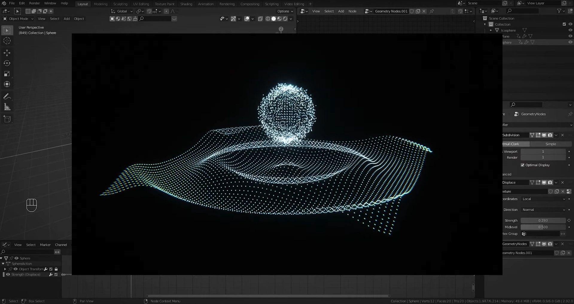 🇬🇧 Abstrakte Musikvisualisierung. Du importierst eine Sounddatei und Blender errechnet daraus eine Animation nach deinen Vorgaben!