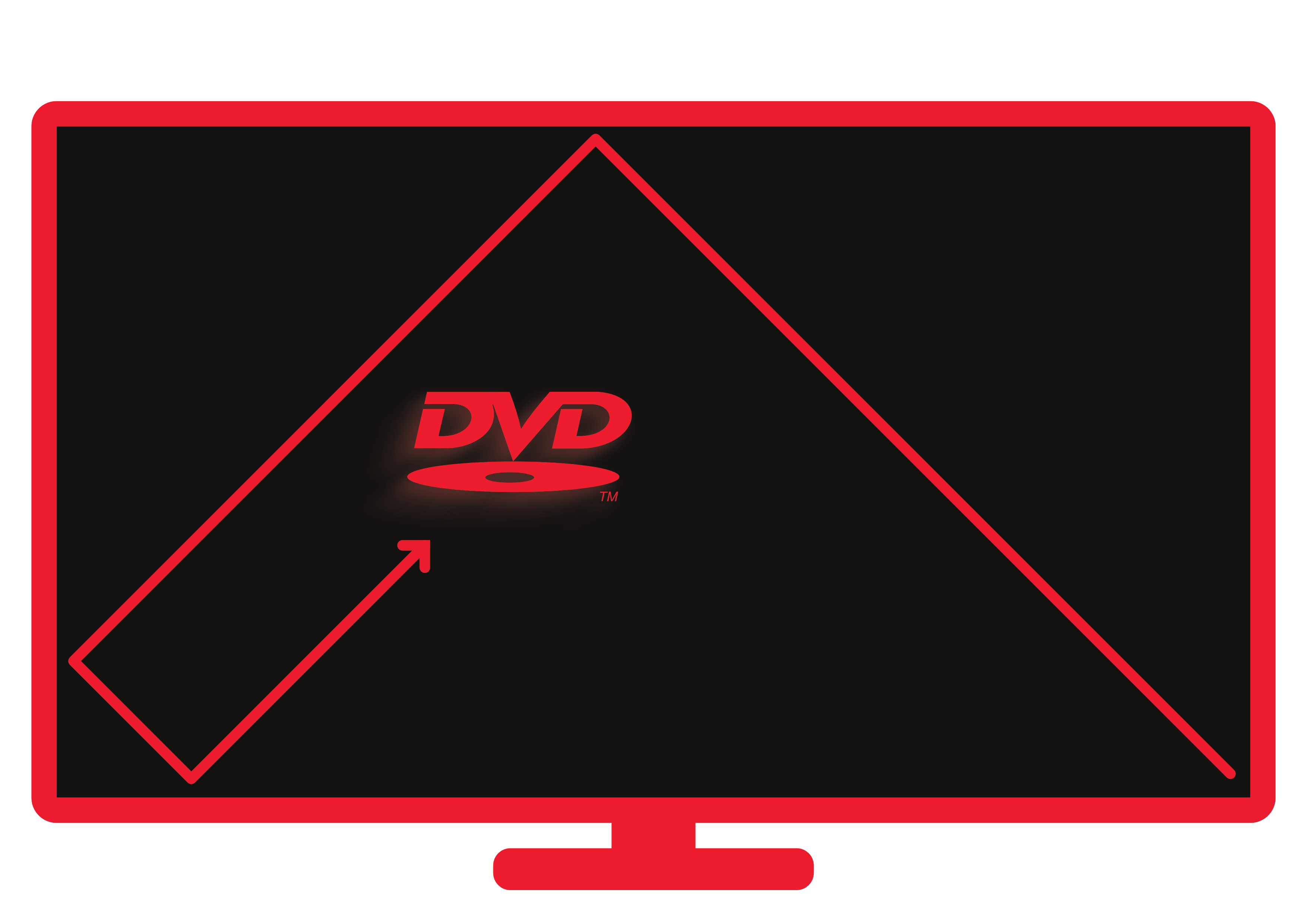 Es passiert niemals, da das DVD-Logo höchstens zwei Ecken jemals erreicht. Sobald eine Ecke getroffen wird, kehrt das Logo um und fährt den Hinweg rückwärts ab.