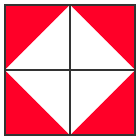 Nennen wir die Kantenlänge des großen Quadrats ''x'', so ist jede Lösung korrekt, die ein Quadrat mit Kantenlänge \(x/\sqrt{2}\) frei lässt. Eine grafisch intuitive Lösung sieht so aus: